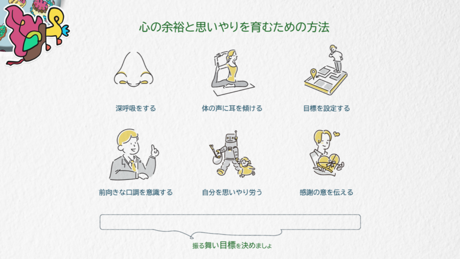心の余裕がある人は、日々の喧騒やストレスに対処しやすいものです。ここでは、心の余裕と思いやりを育むための方法について解説。心の余裕や他者への思いやりが日常にあるかな……と振り返りに使うとよかよ。